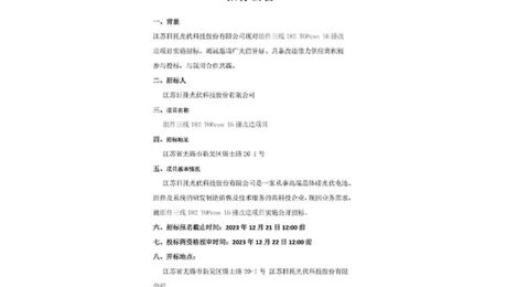 江蘇日托組件線182 TOPCon 16柵改造 10BB改16BB 項目招標